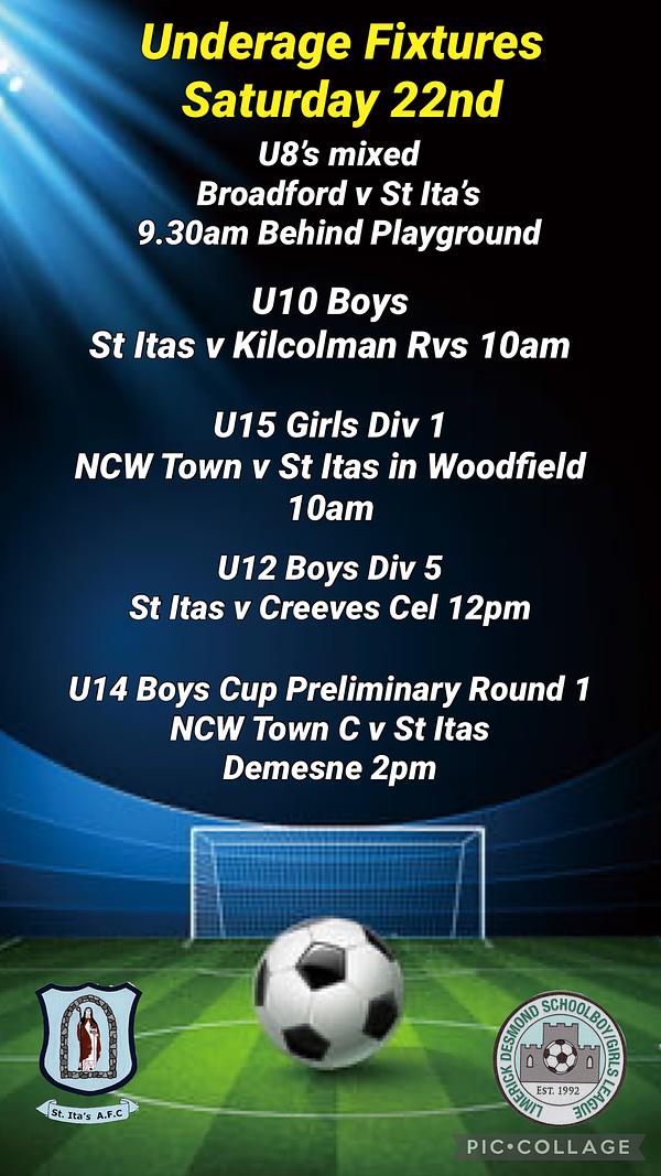 U10 Boys are a home and play Kilcolman Rovers A.F.C at 10am